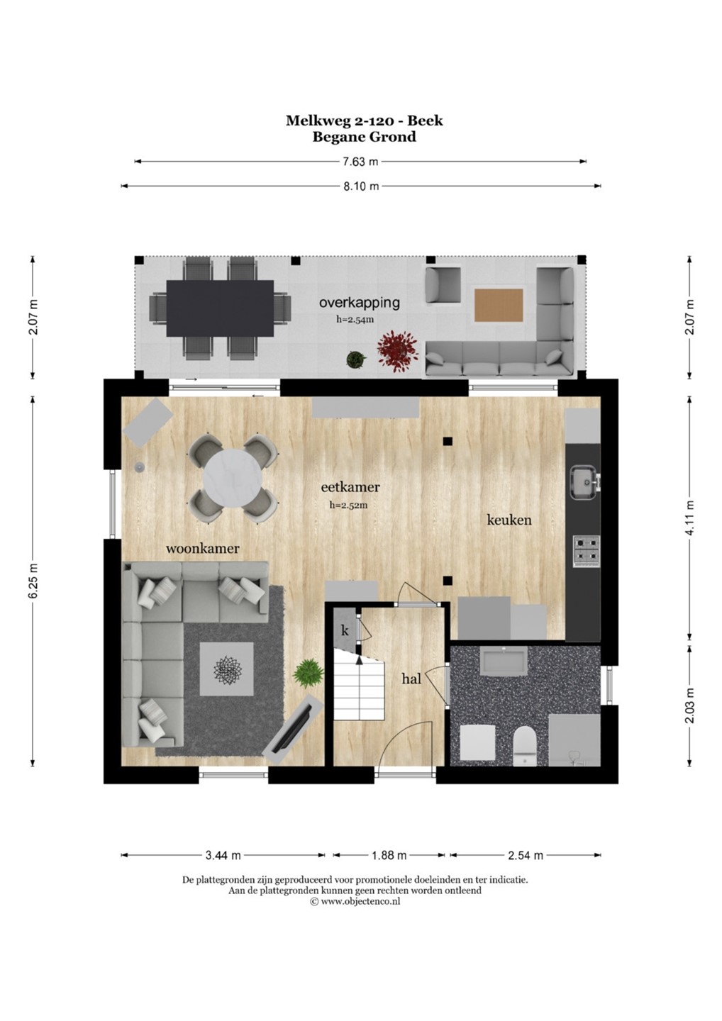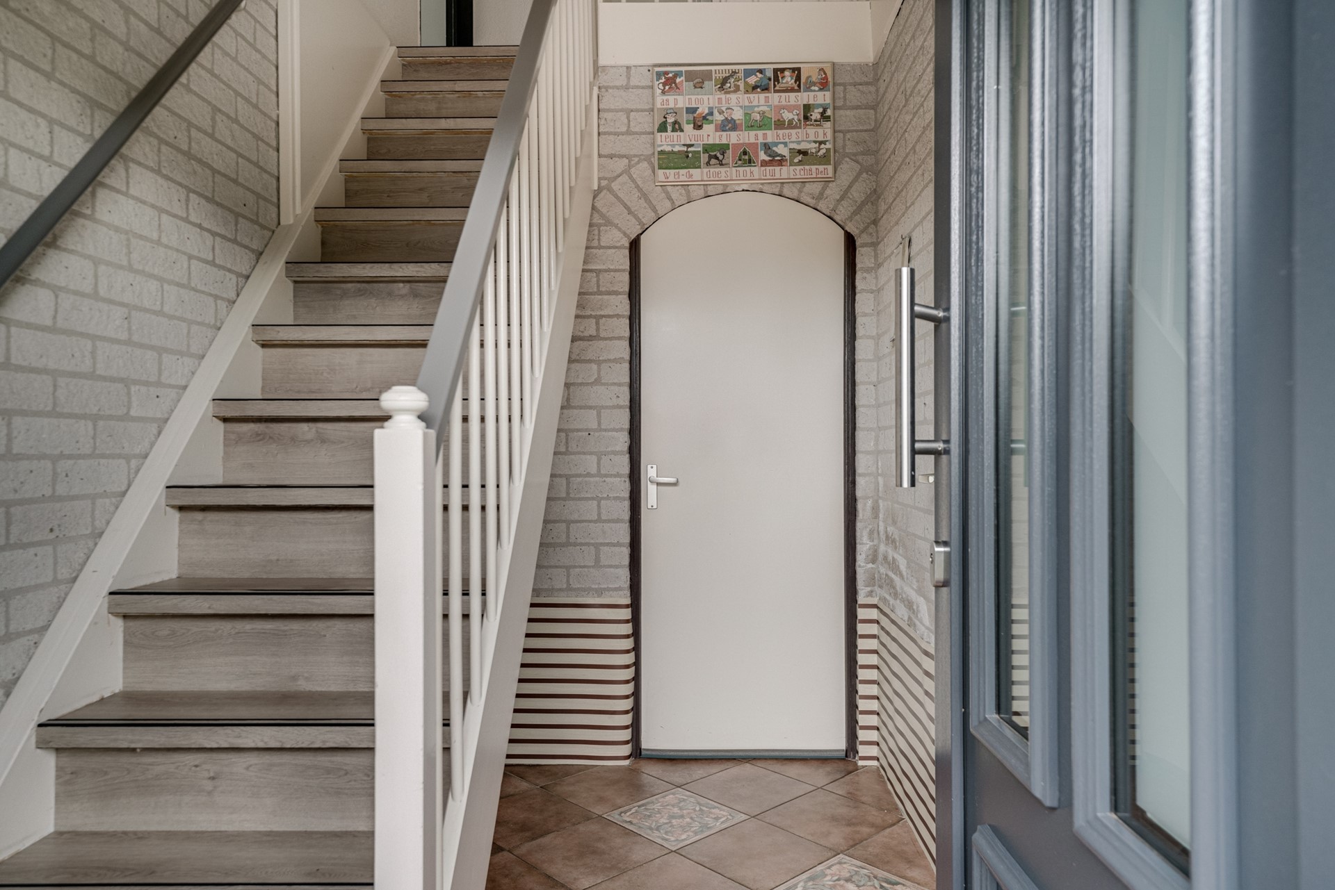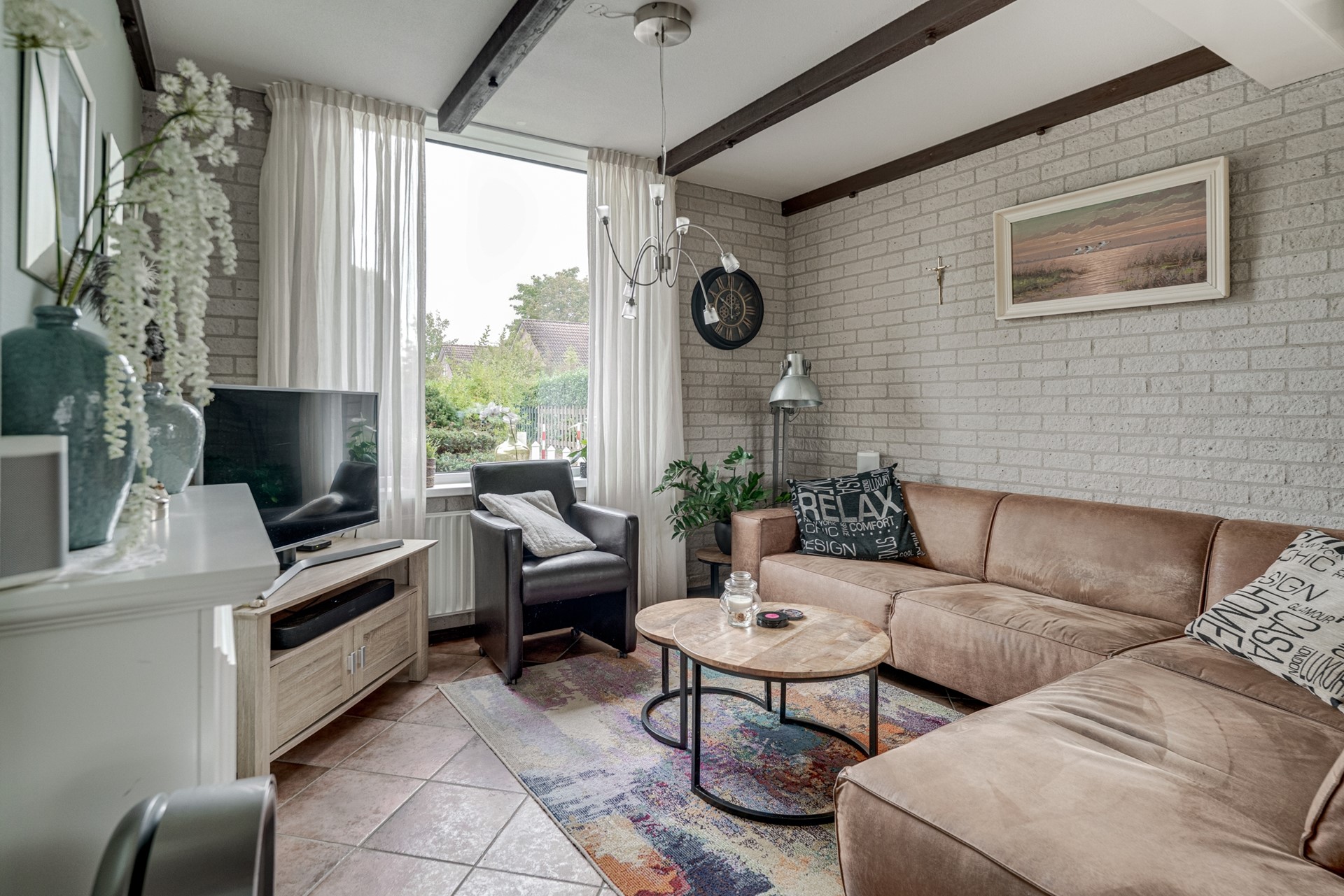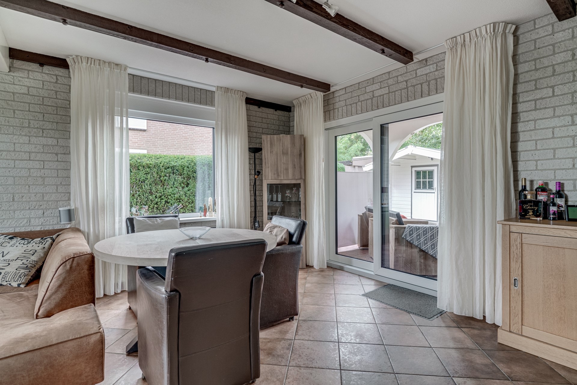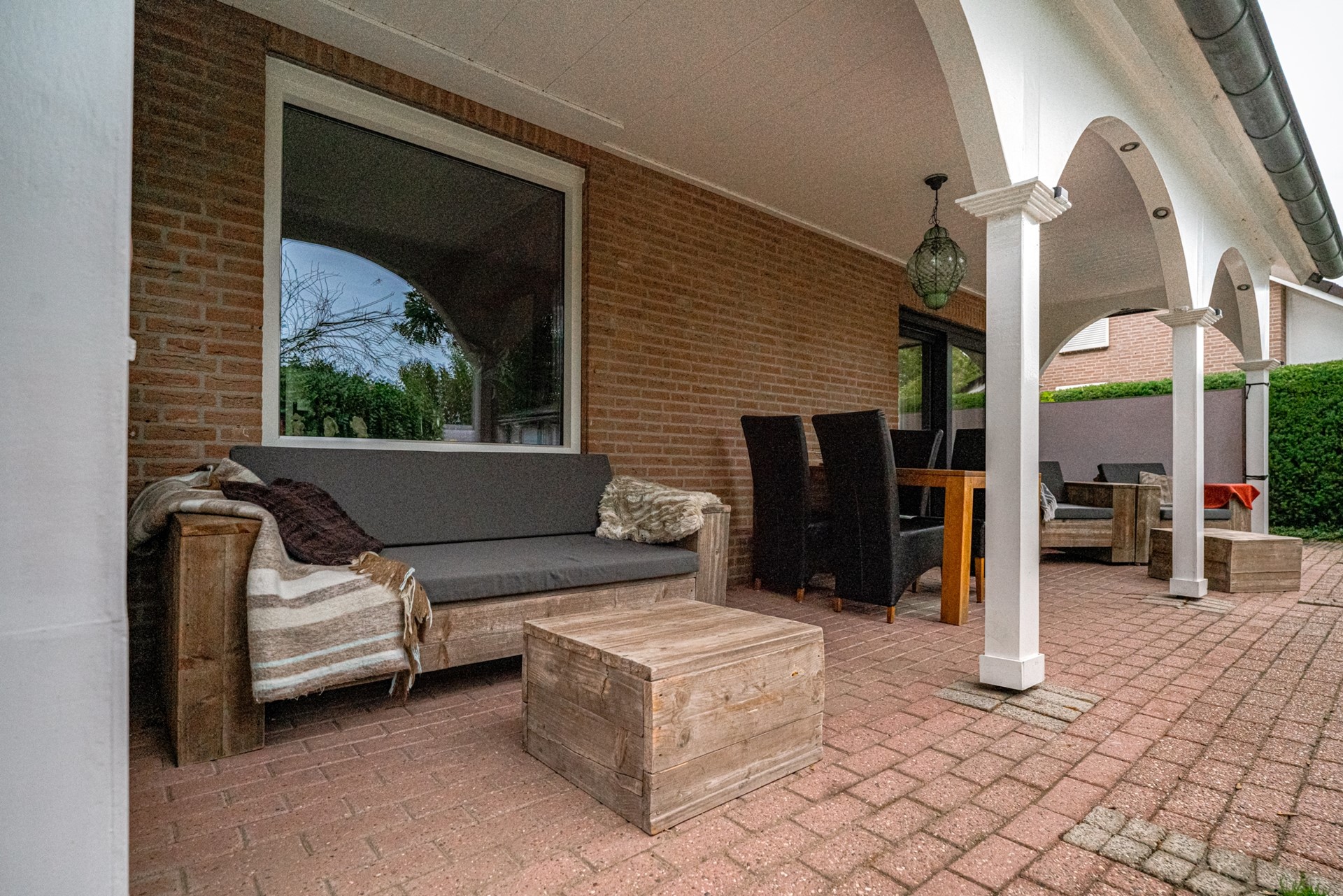 Via de kunststof schuifpui aan de achterzijde kom je uit in de zonnige, op het zuidwesten gelegen achtertuin met gezellige overkapping en vrijstaande houten berging met elektra.