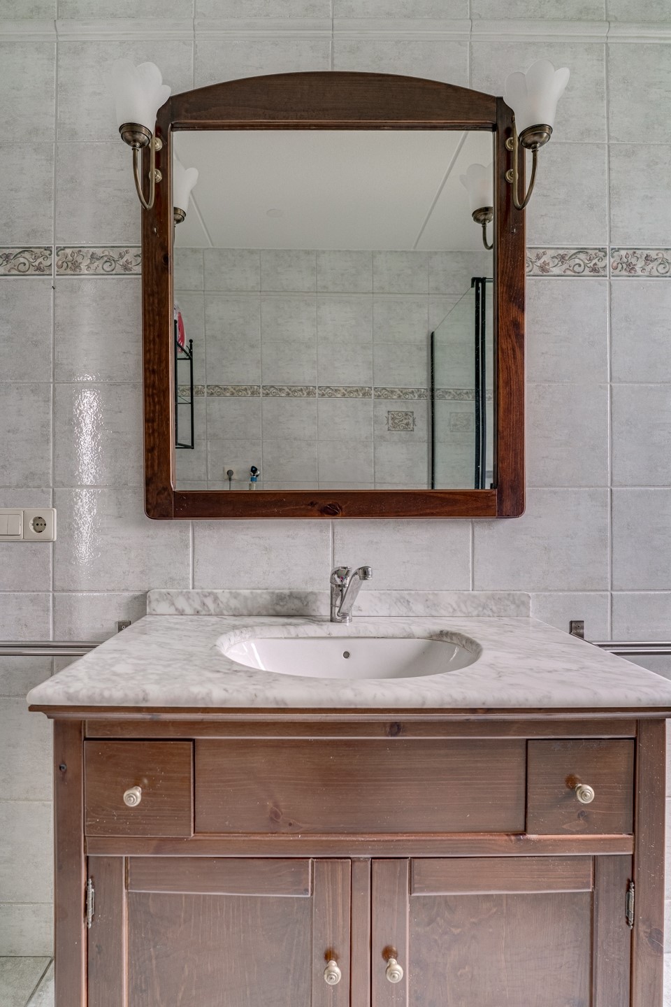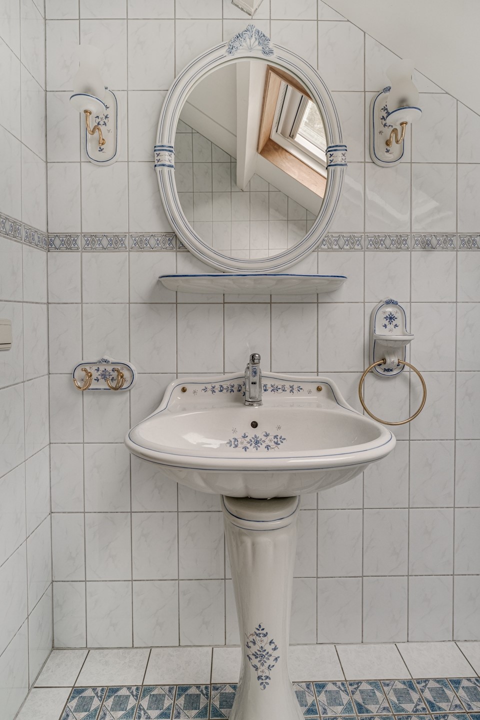 Overloop met inbouwkast v.v. cv-installatie en tweede toilet met fontein (eventueel om te bouwen tot tweede badkamer). Twee goed bemeten slaapkamers, beiden met royale inbouwkasten en één slaapkamer met een Frans balkon.