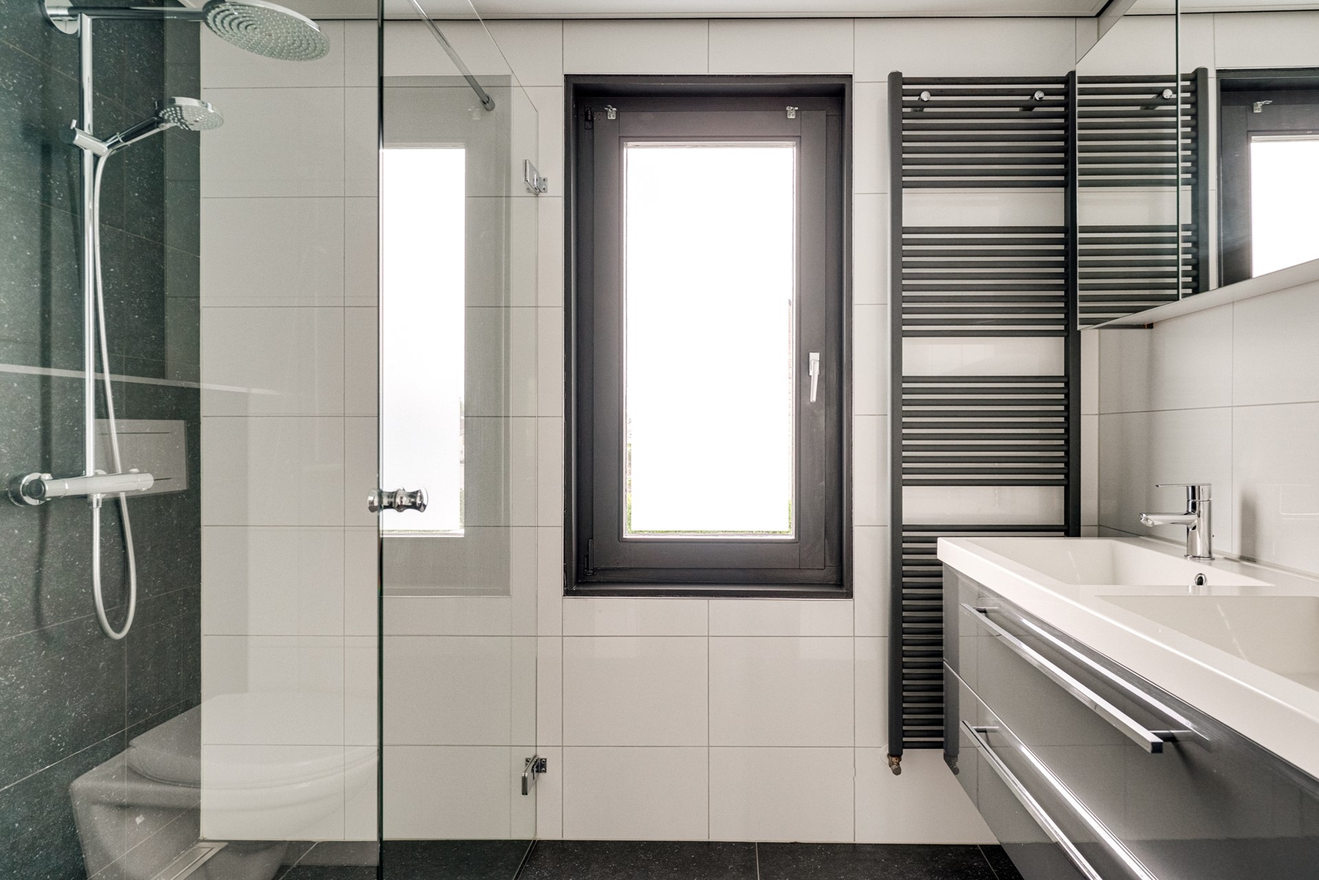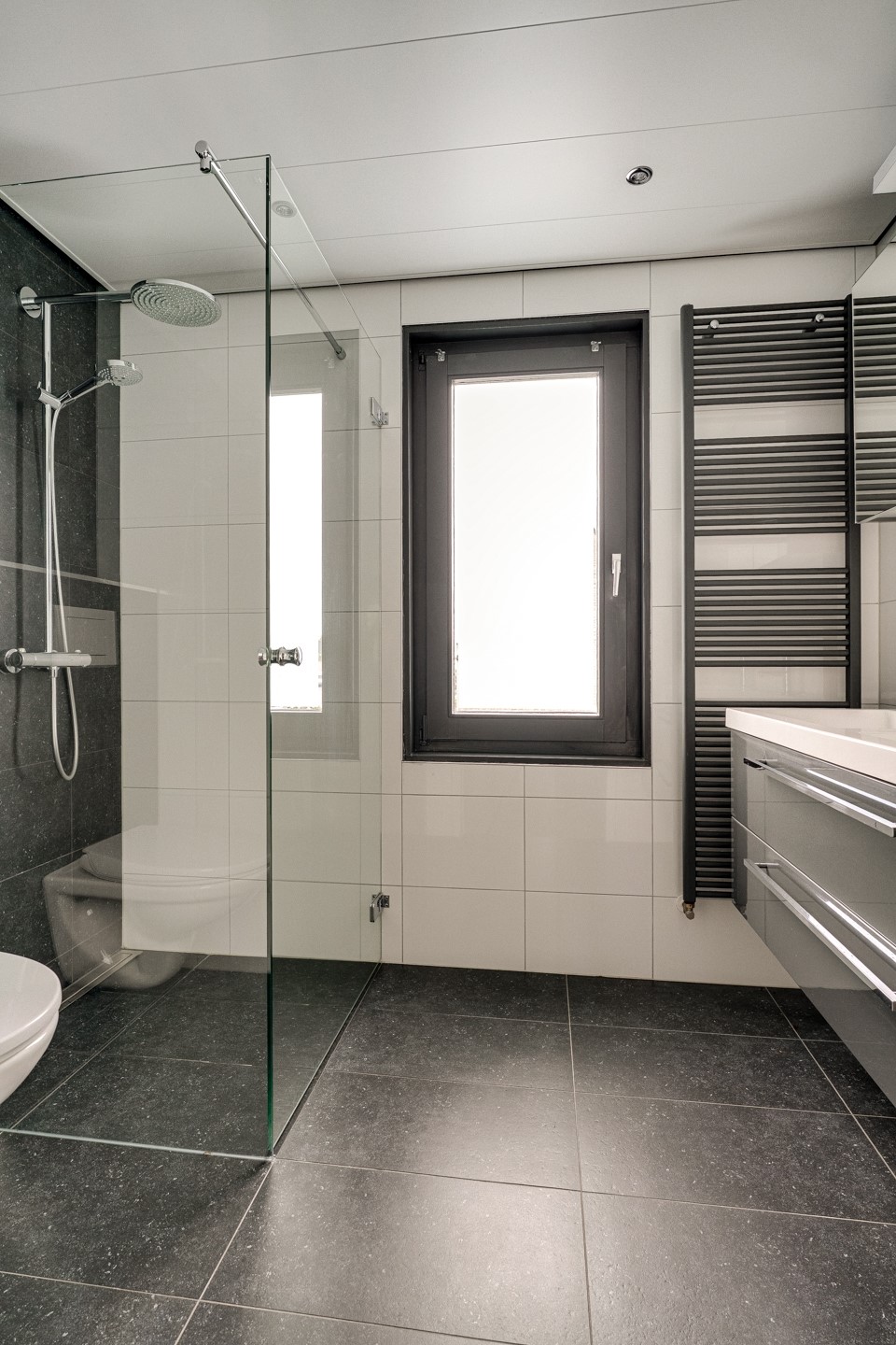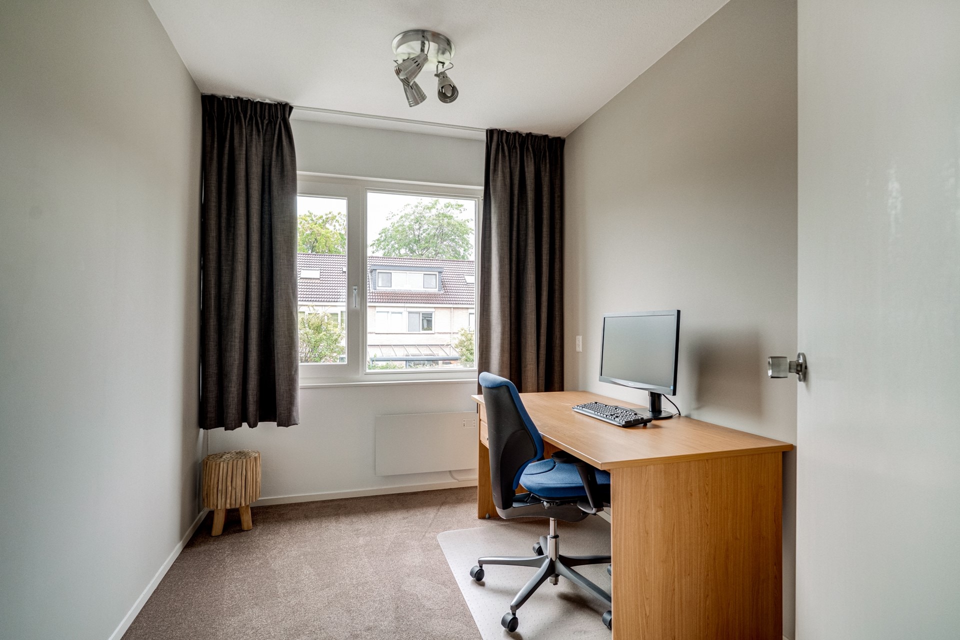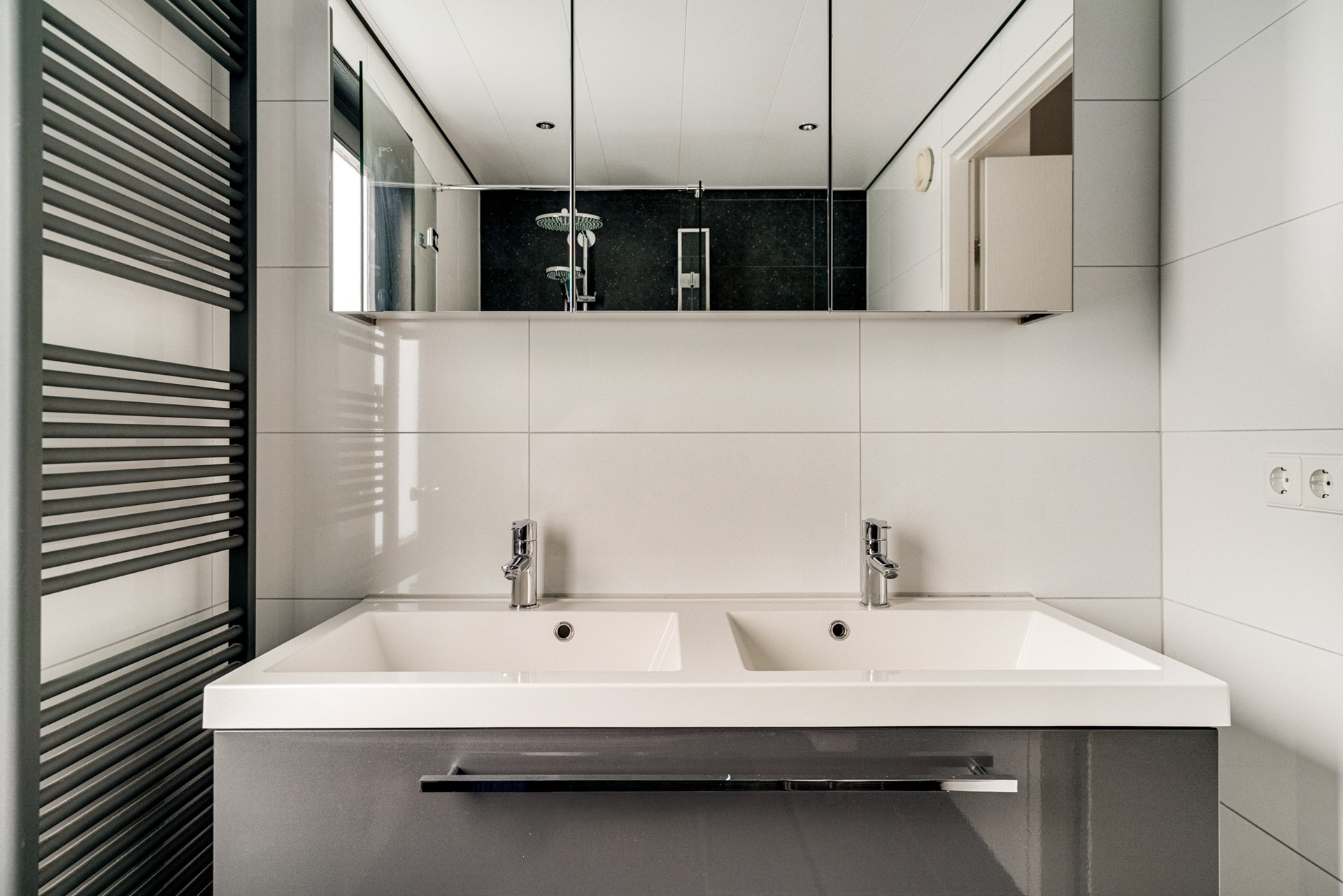 Ruime overloop met toegang tot de drie volwaardige slaapkamers, allen uitgerust met rolluiken. Twee slaapkamers zijn uitgerust met een elektrische radiator en één slaapkamer is uitgerust met een inbouwkast. De nette badkamer is aan de voorzijde gelegen en voorzien van een inloopdouche (regendouche), wastafelmeubel met dubbele bak, spiegelkast, tweede hangend toilet, design radiator en mechanische ventilatie.