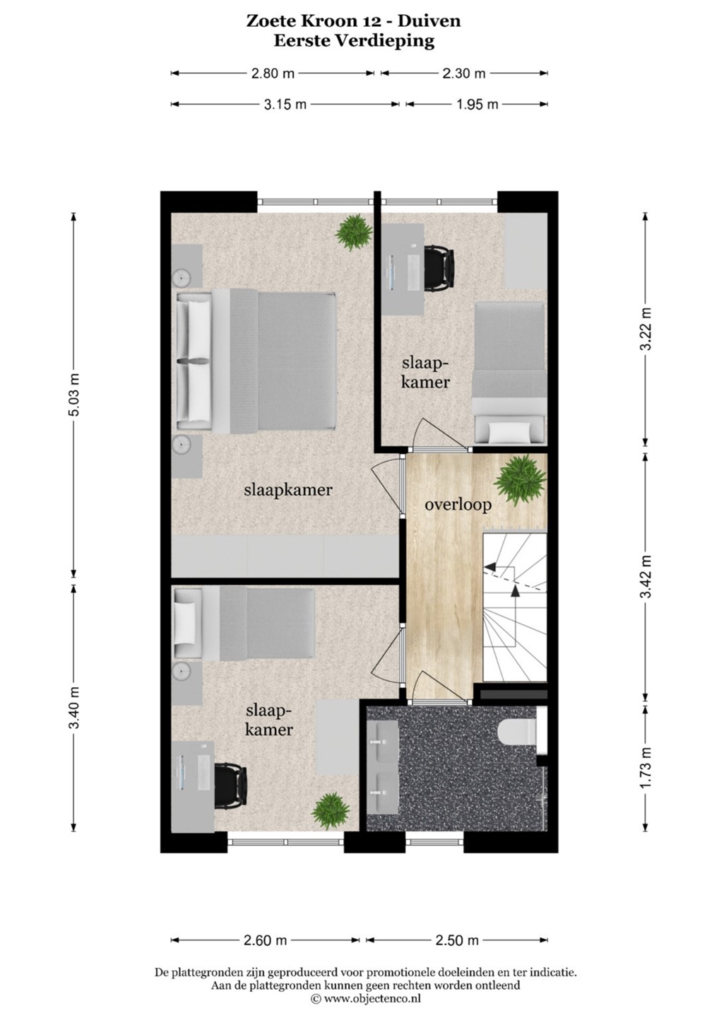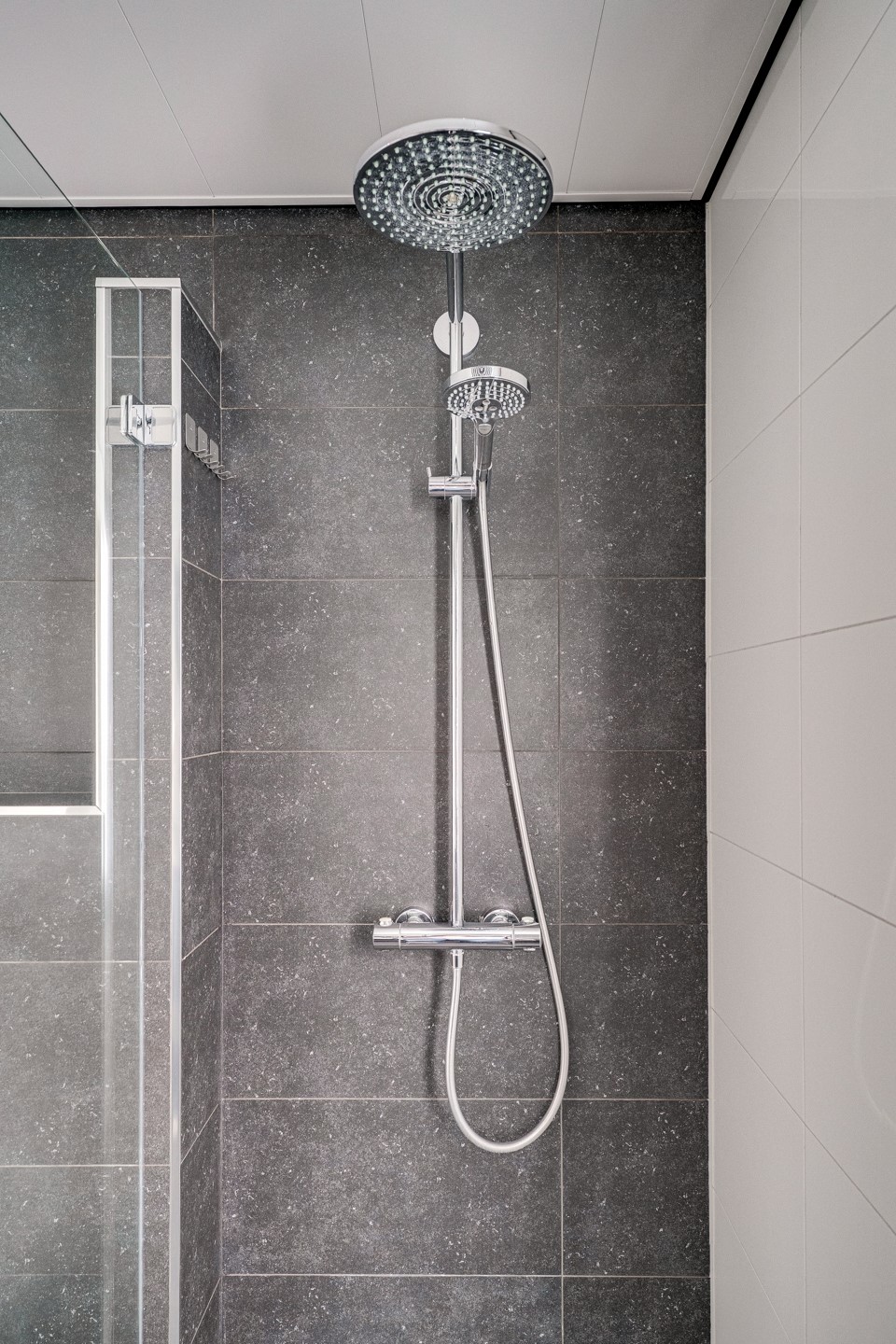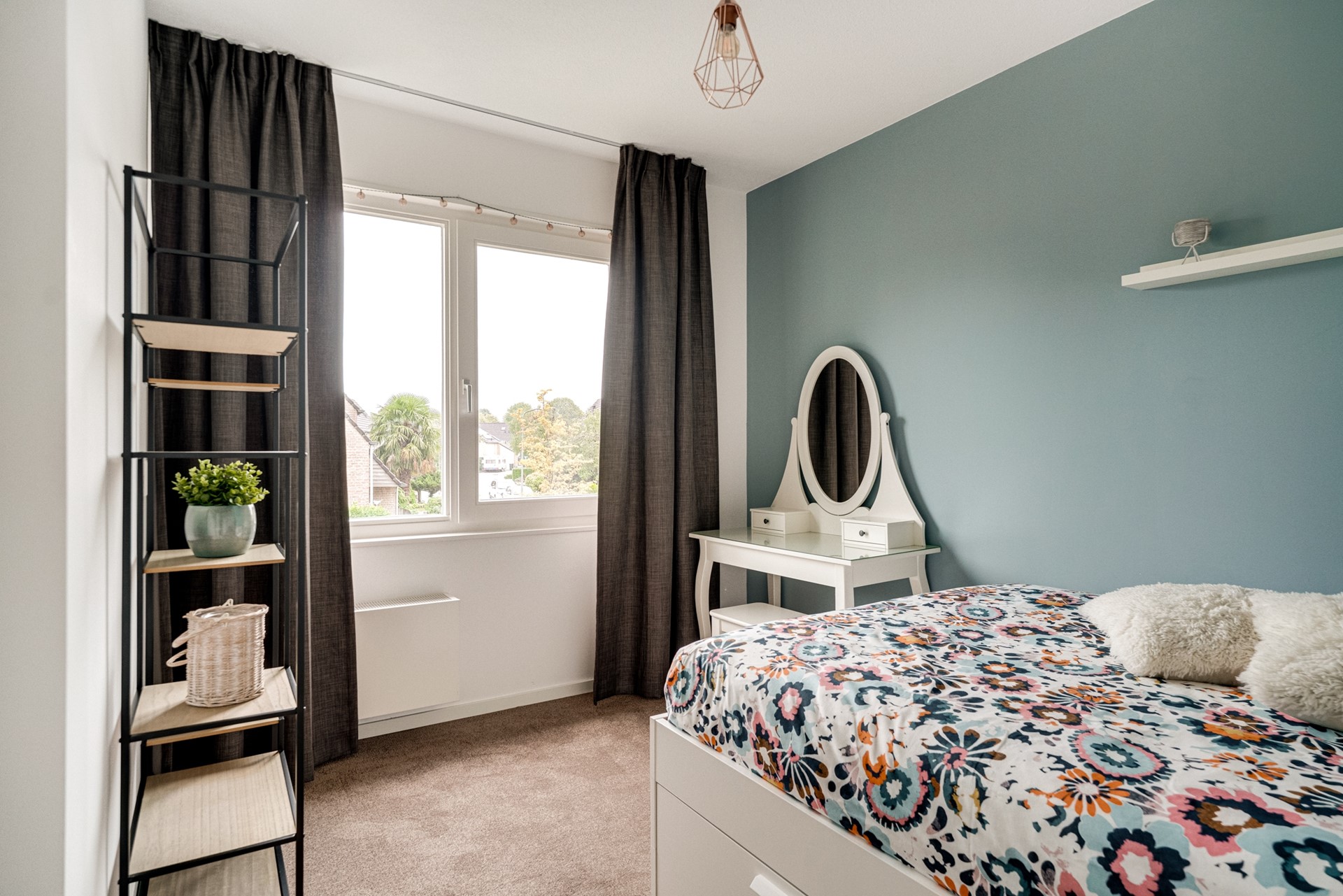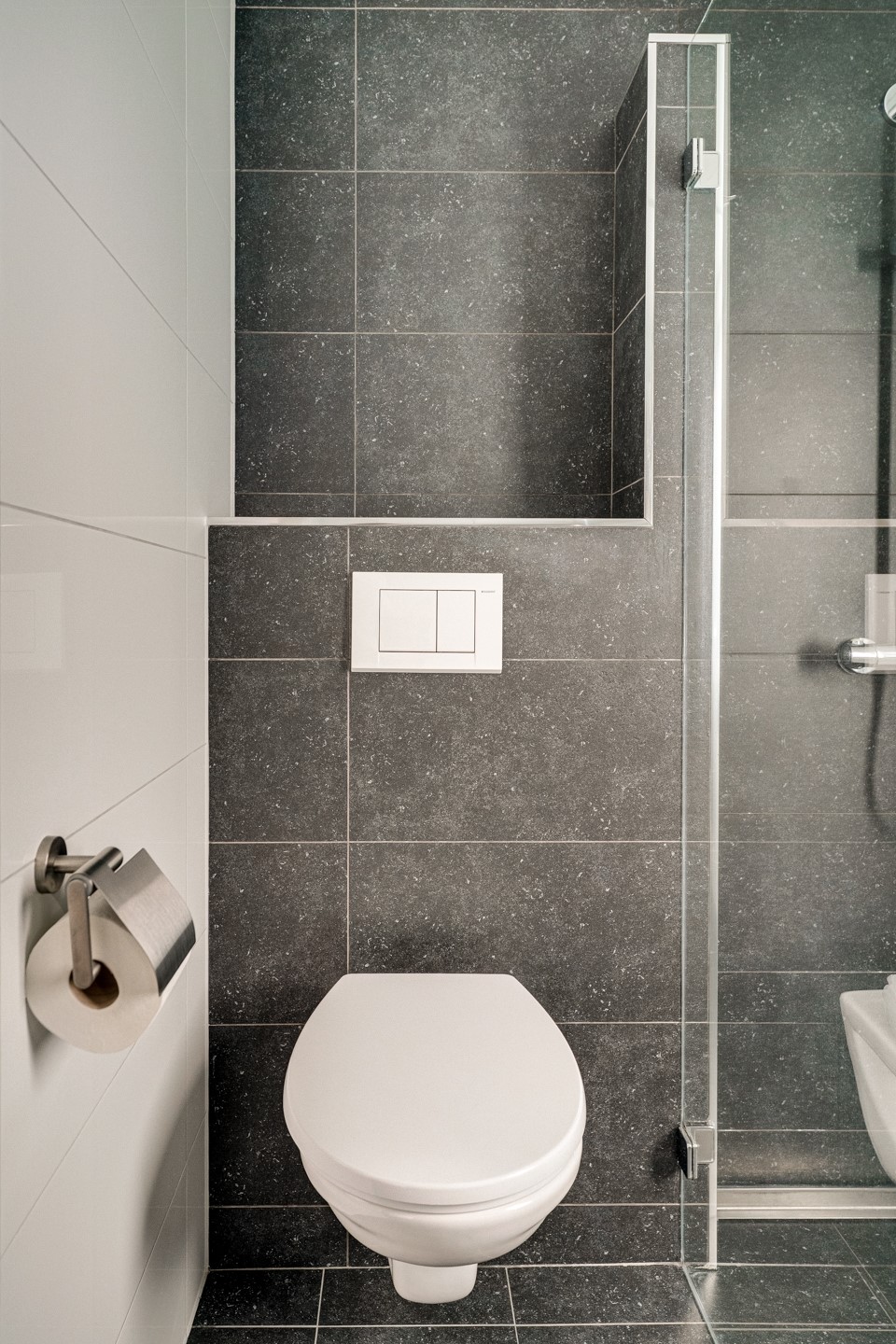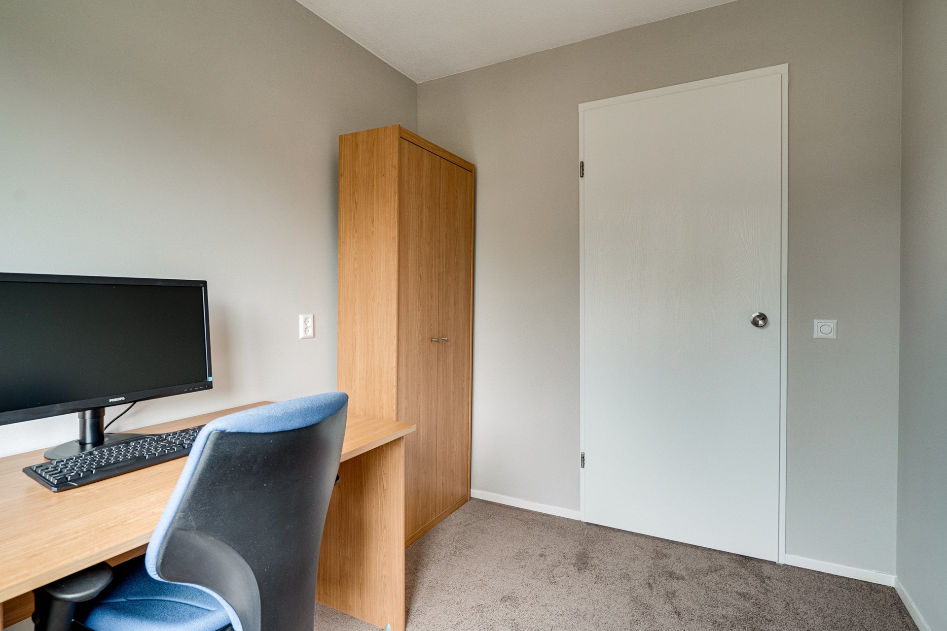Ruime overloop met toegang tot de drie volwaardige slaapkamers, allen uitgerust met rolluiken. Twee slaapkamers zijn uitgerust met een elektrische radiator en één slaapkamer is uitgerust met een inbouwkast. De nette badkamer is aan de voorzijde gelegen en voorzien van een inloopdouche (regendouche), wastafelmeubel met dubbele bak, spiegelkast, tweede hangend toilet, design radiator en mechanische ventilatie.