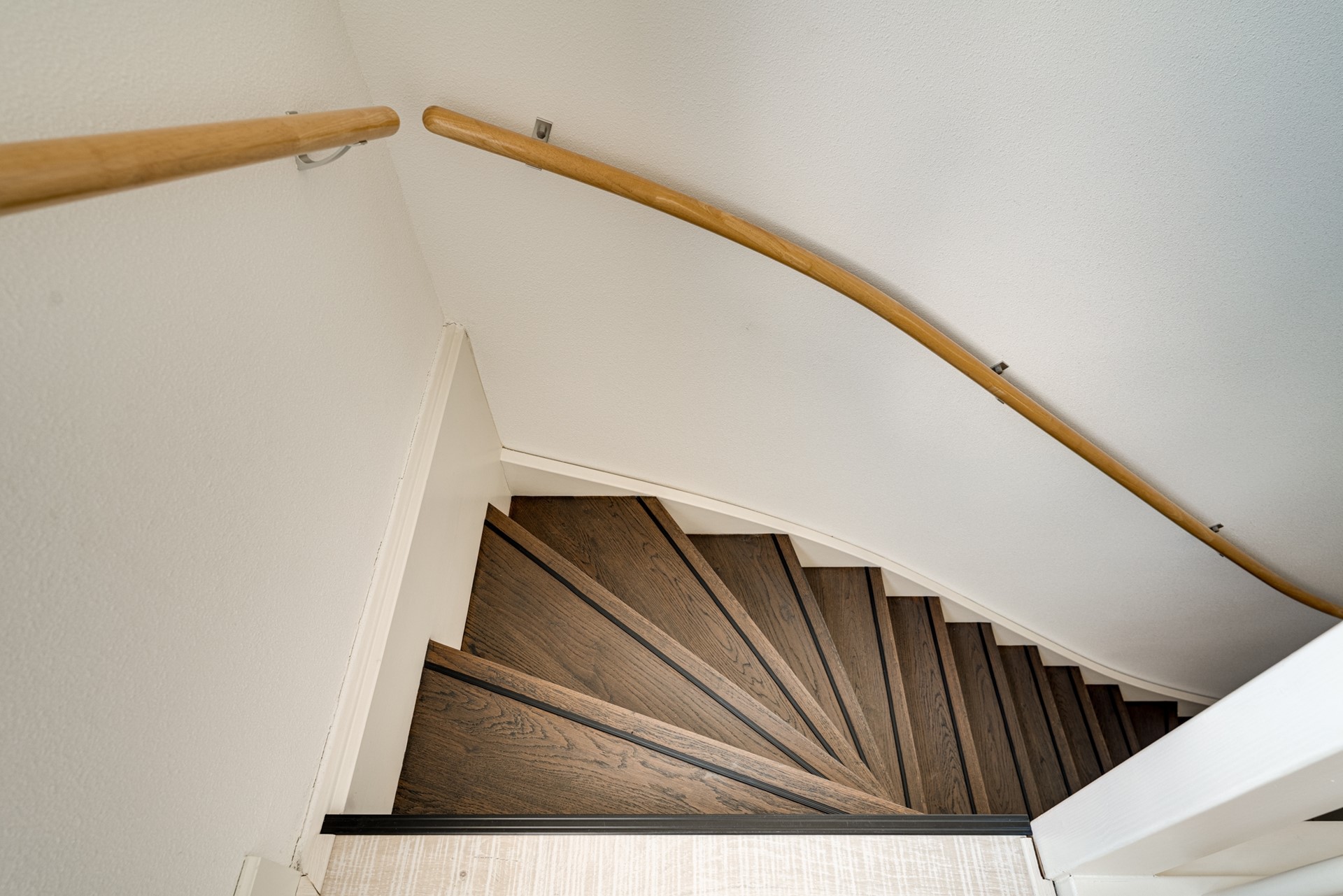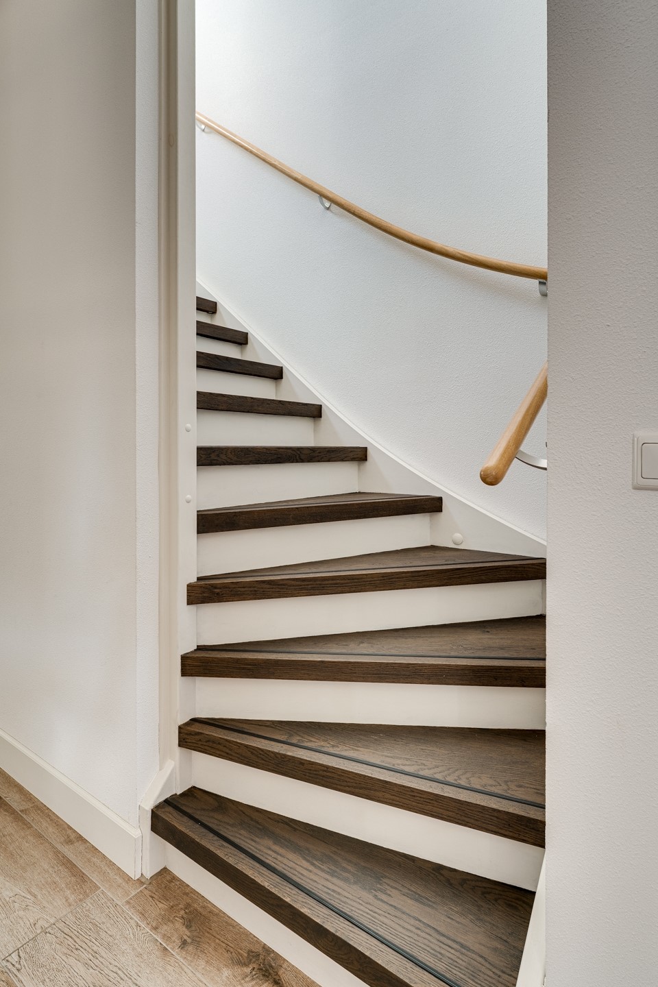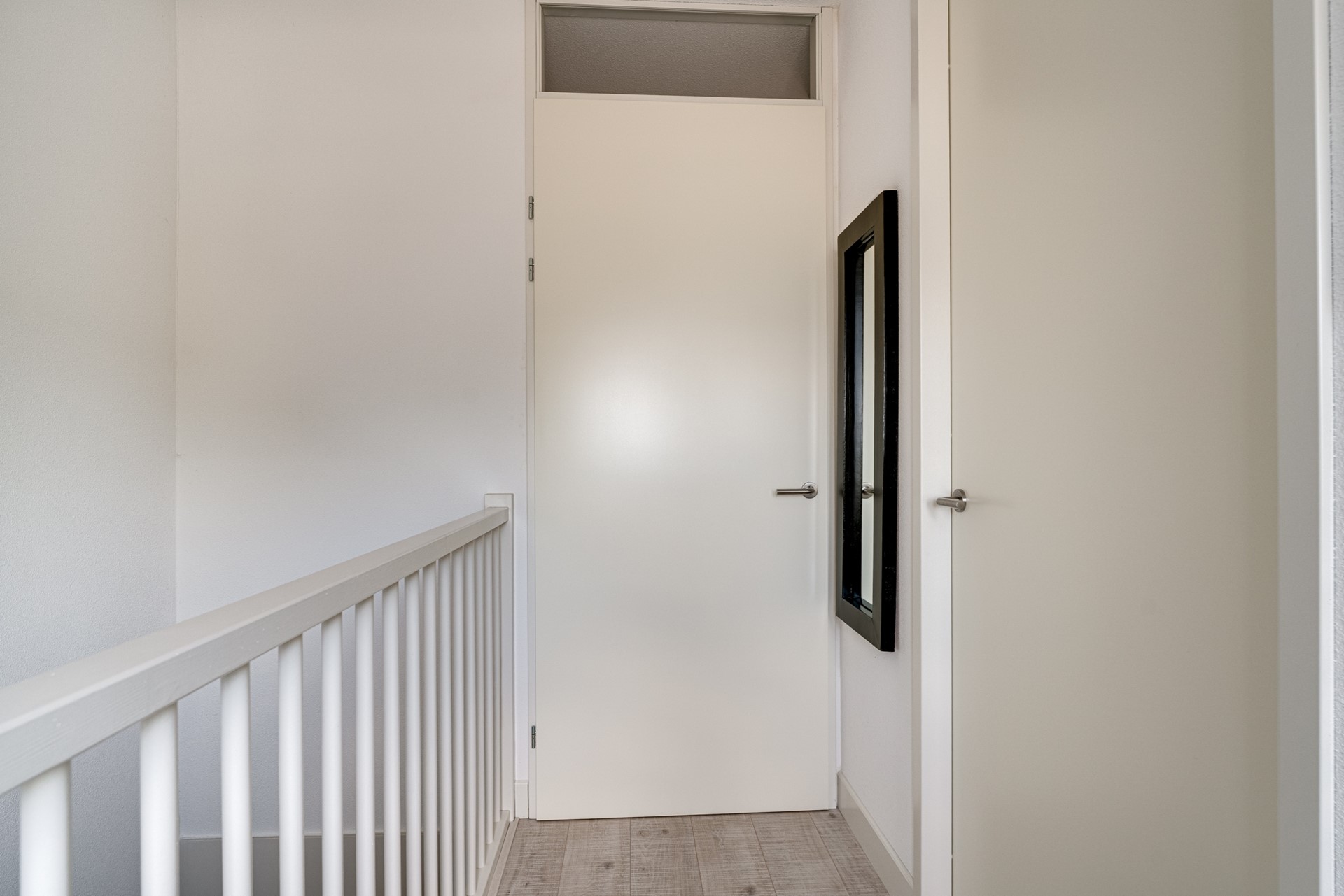 Overloop met toegang tot de ruime tweede en derde slaapkamer, beiden met een inbouwkast en elektrische rolluiken. Op de eerste verdieping is eventueel een tweede badkamer te realiseren.
