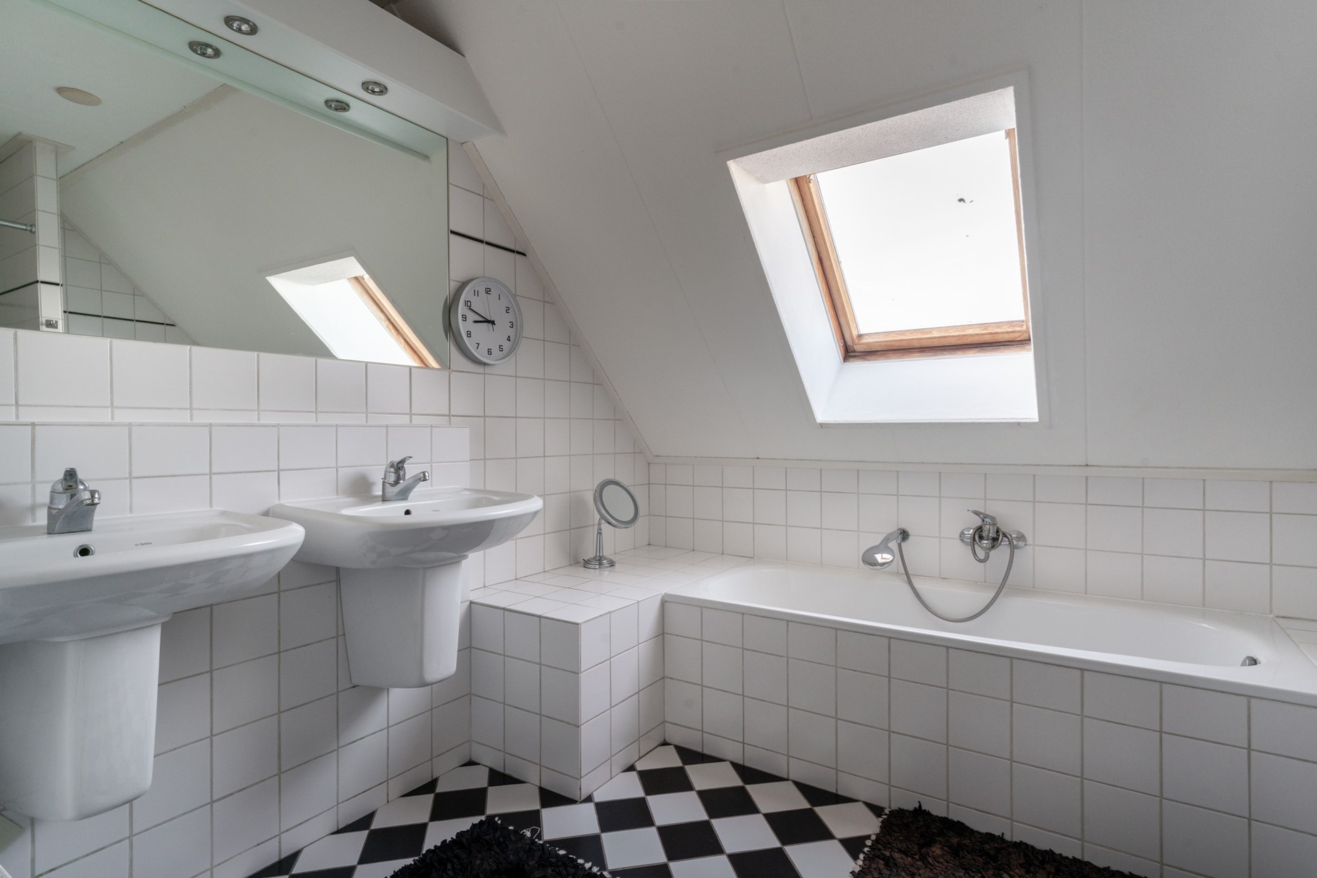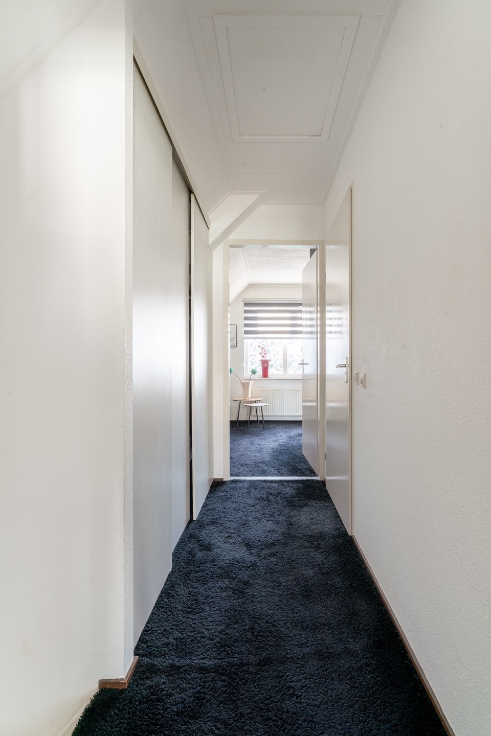 Overloop met inbouwkast en toegang tot de twee ruime slaapkamers, beiden met bergschotten en één slaapkamer met toegang tot het balkon. De badkamer beschikt over een inloopdouche, ligbad, tweede toilet en dubbele wastafel.