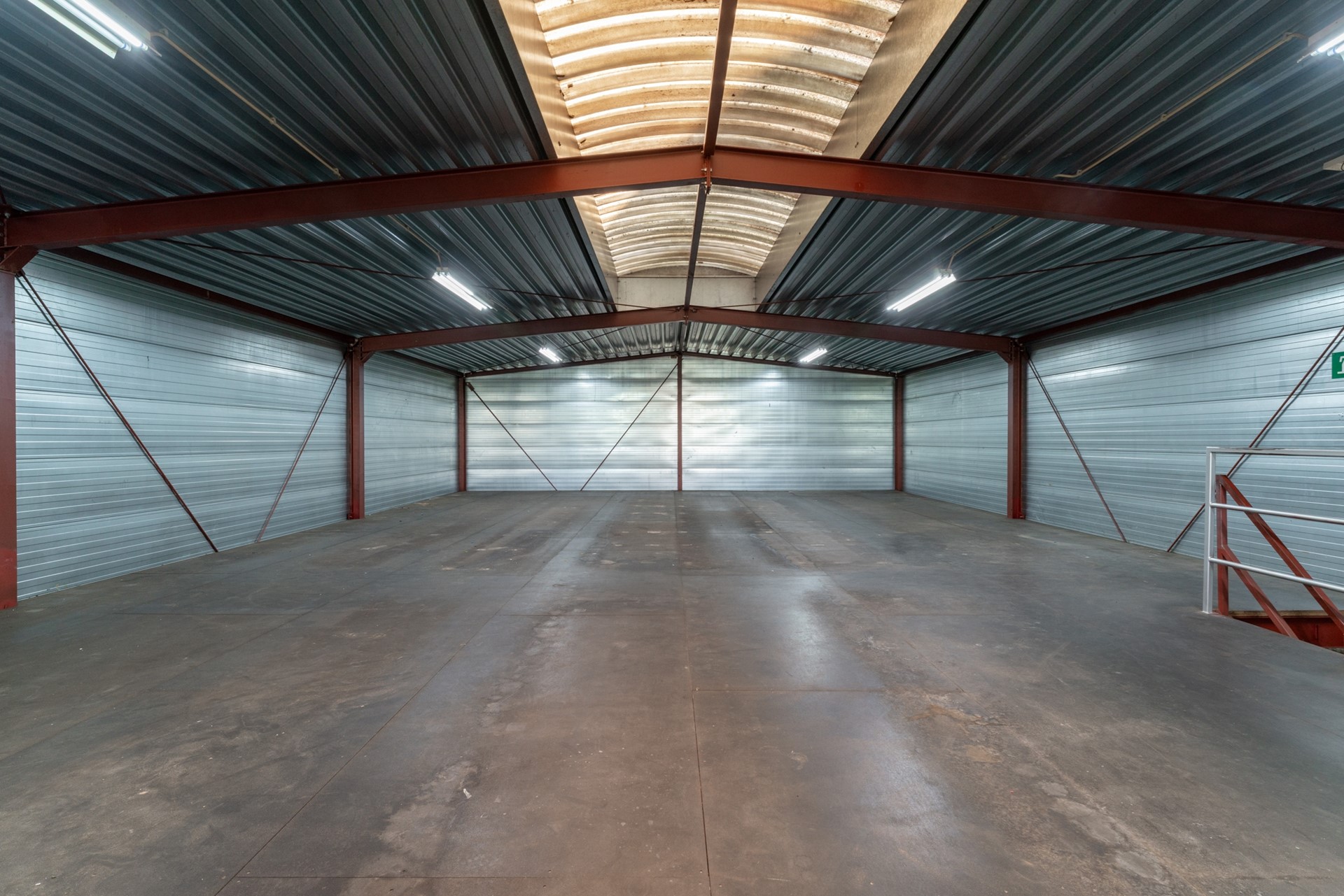 - Multifunctionele loods met krachtstroom, toiletgroep, keuken en kantoor;