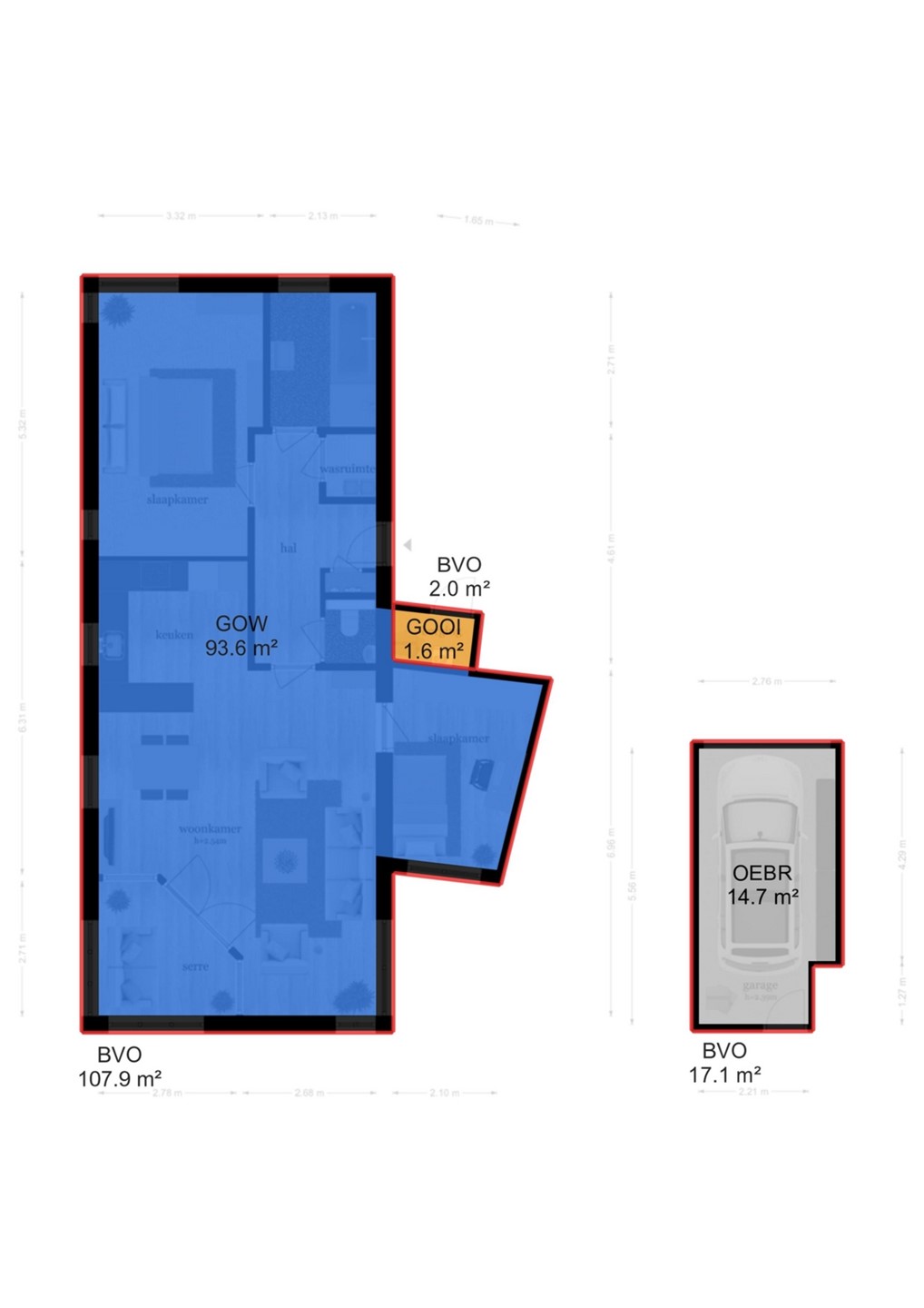 - Inpandig te bereiken garage aanwezig met water en elektra;