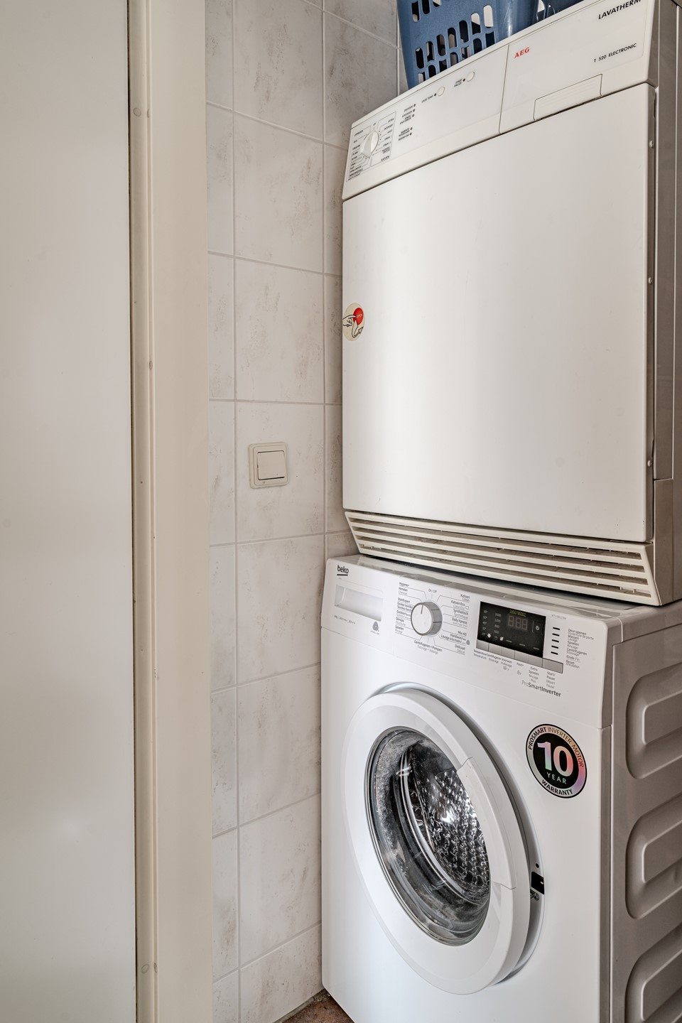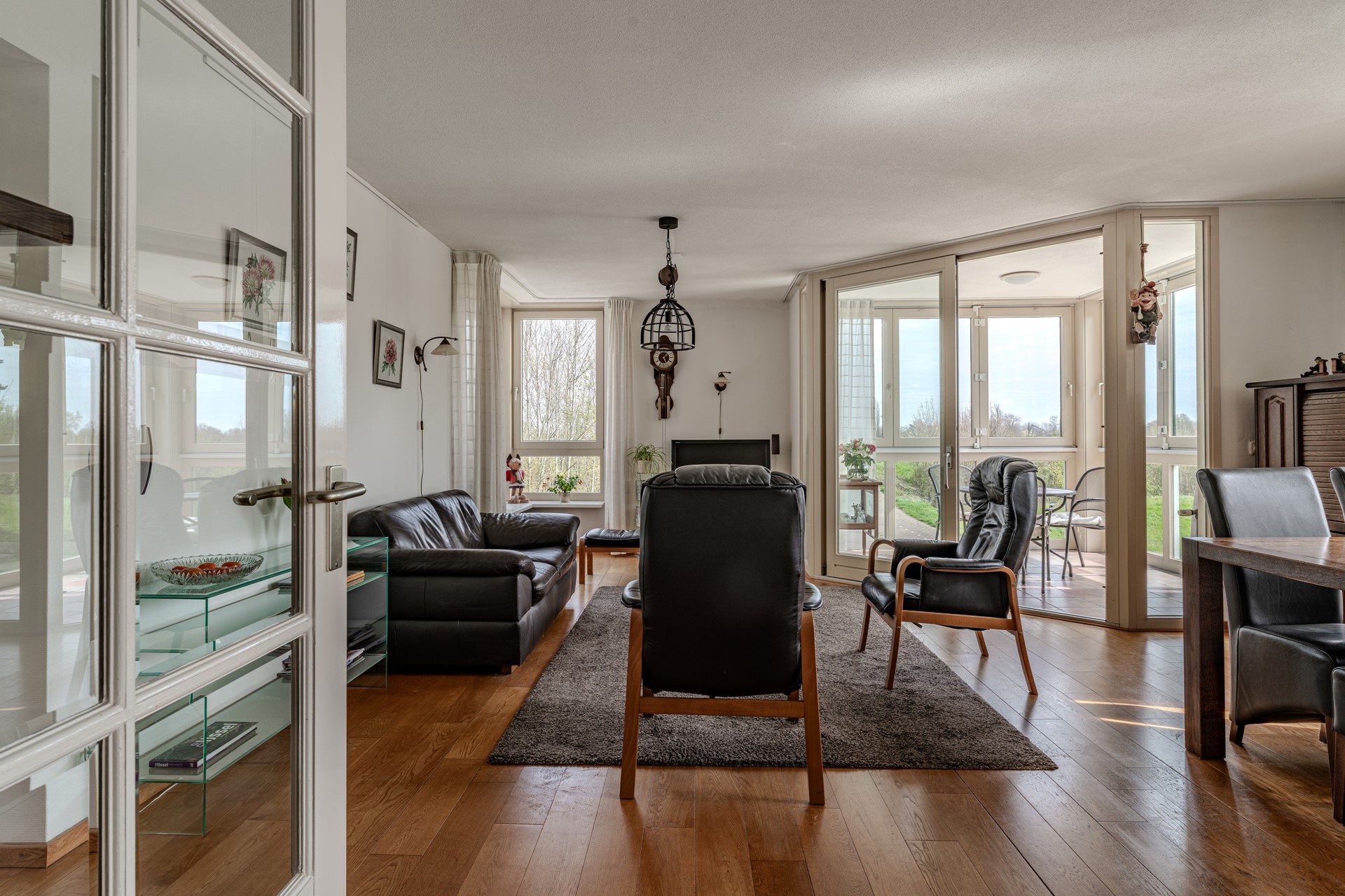 Grenzend aan de open keuken is de ruime en lichte woonkamer. De woonkamer is uitgerust met elektrische screens en een warme parketvloer. De woonkamer biedt tevens toegang tot de zonnige loggia, welke is verwarmd en voorzien van harmonicaramen.