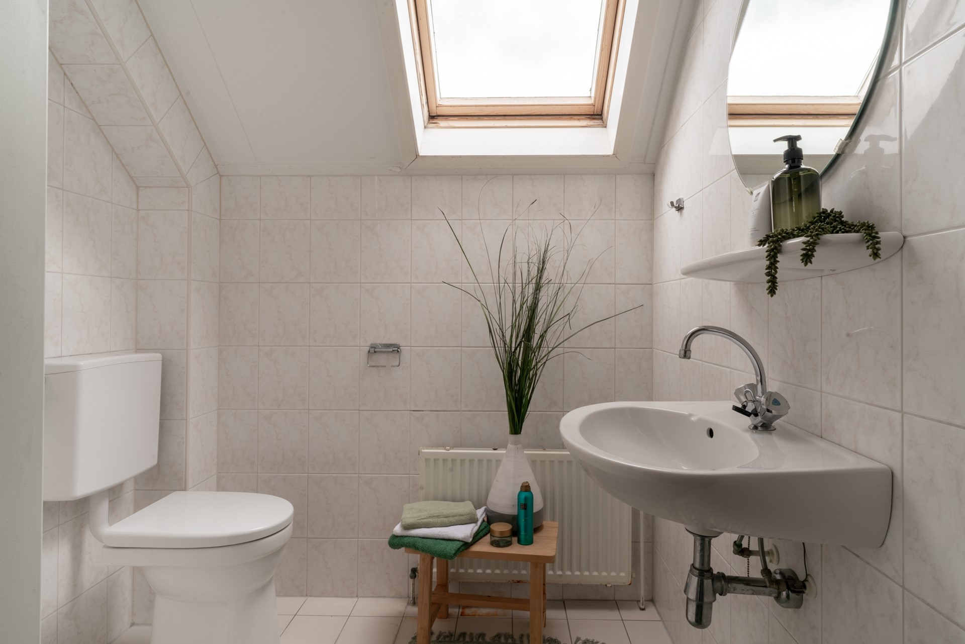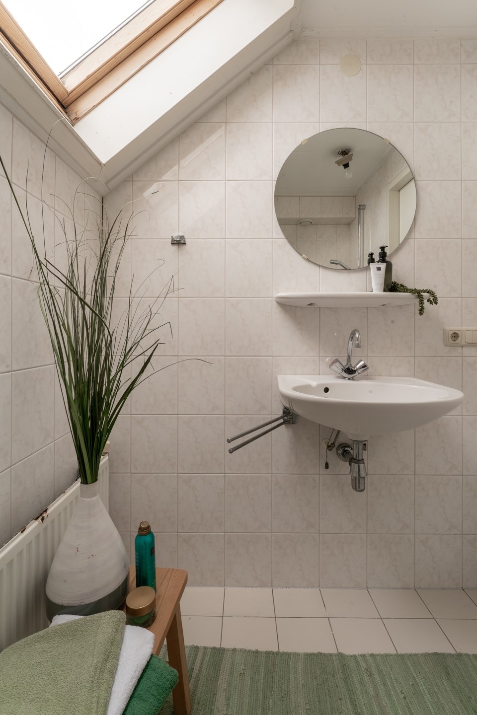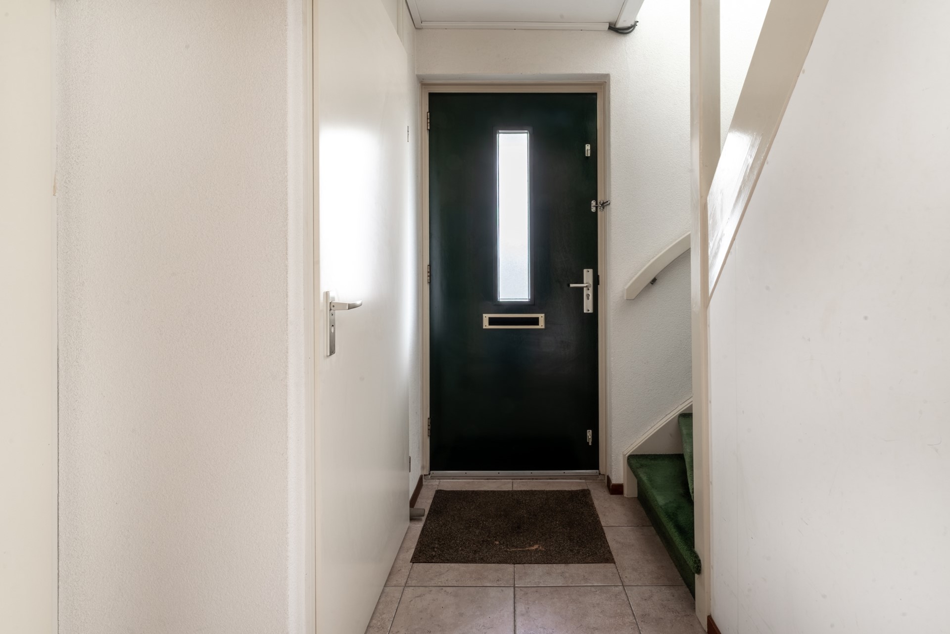 Entree via hal met trapopgang, toilet met fontein en de meterkast met glasvezelaansluiting. Aan de achterzijde is de ruime slaapkamer met inbouwkast en aansluitende badkamer gelegen. De badkamer beschikt over een douchehoek, wastafel en tweede toilet.