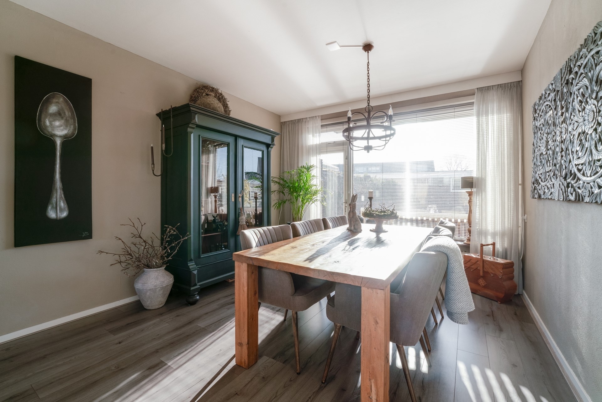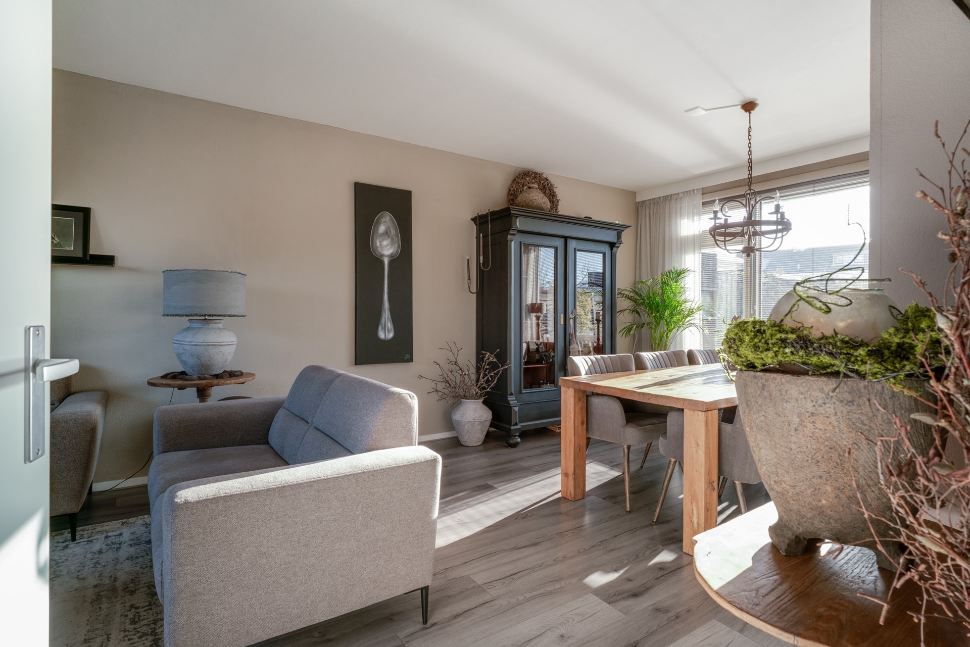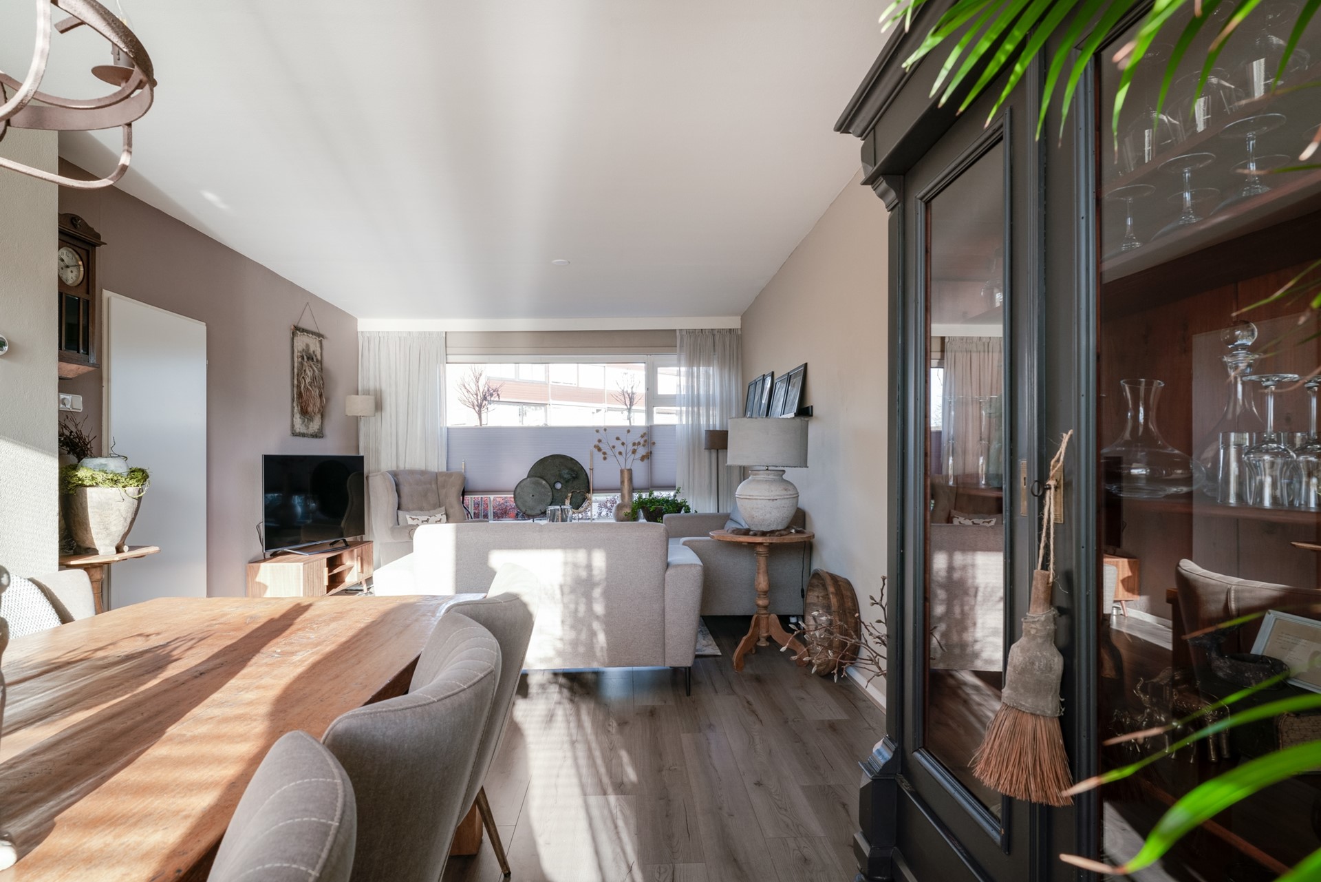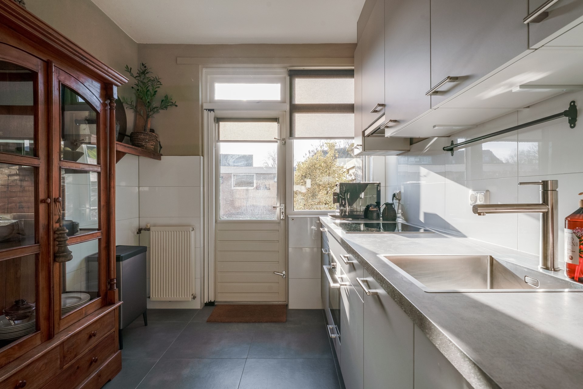 Entree via hal met trapopgang, uitgebreide meterkast en vernieuwd toilet met fontein. Ruime woonkamer met glasvezelaansluiting en nette laminaatvloer. De vernieuwde keuken is aan de achterzijde gelegen en uitgerust met diverse (Pelgrim) inbouwapparatuur zoals een vaatwasser, koelkast met vriesvak, combi oven en 4-pits inductiekookplaat.
