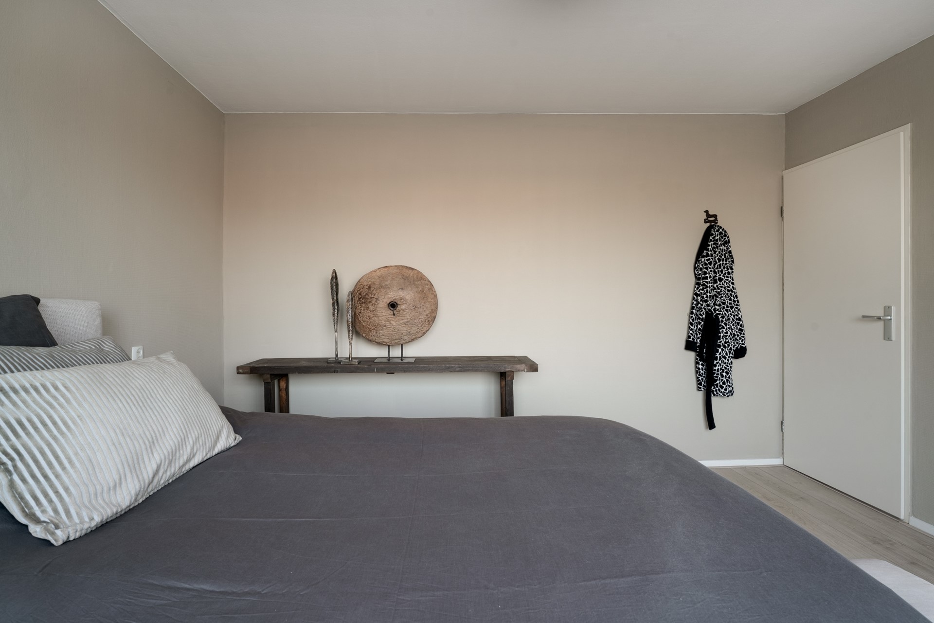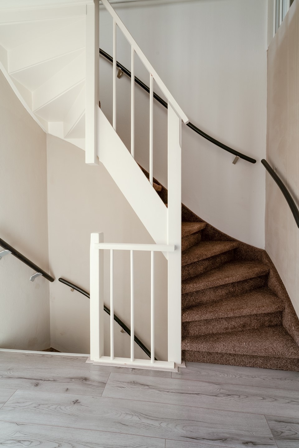 Overloop met toegang tot de drie ruime slaapkamers, allen met een nette laminaatvloer en één slaapkamer met een balkon (zuidoosten). De vernieuwde badkamer is aan de voorzijde te vinden met een douche in bad, wastafel en tweede toilet.