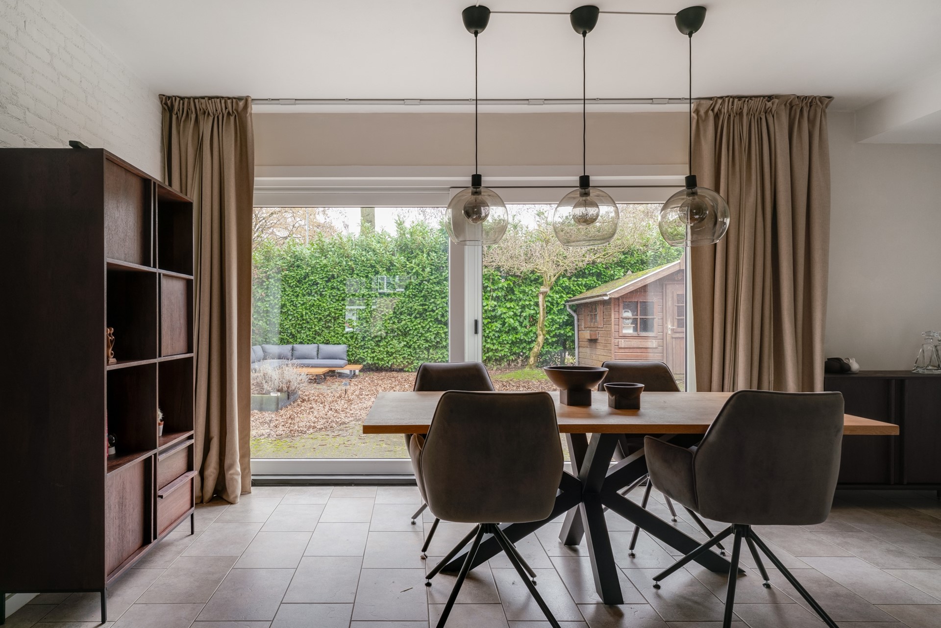 De schuifpui in de woonkamer biedt toegang tot de ruime achtertuin, welke op het oosten is gelegen en bereikbaar is via een achterom. In de achtertuin is de elektra vernieuwd en is een houten berging te vinden.