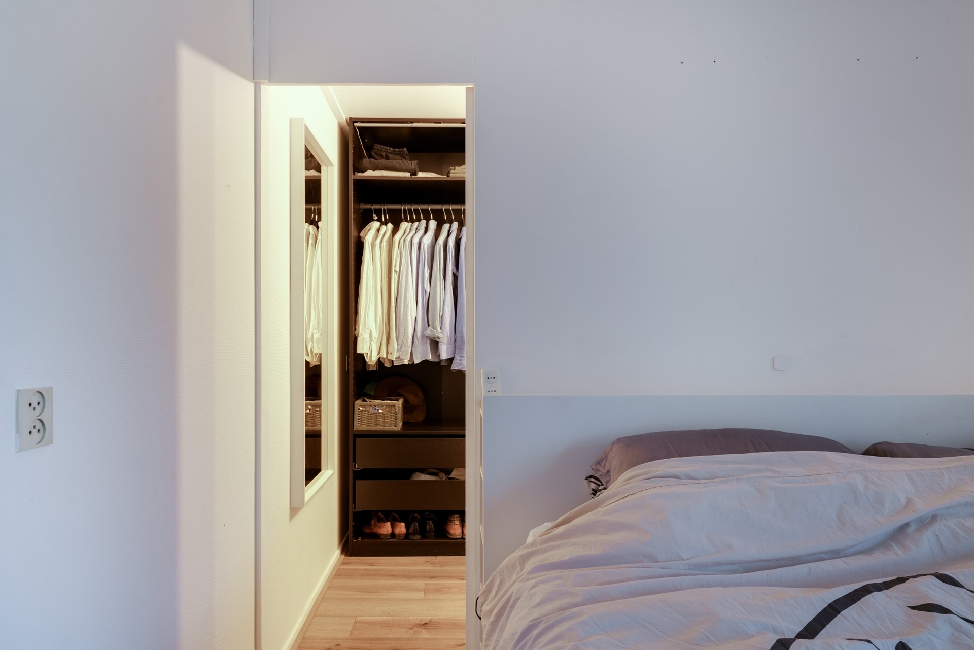 Overloop met aparte was-/stookruimte. Drie volwaardige slaapkamers, waarvan één slaapkamer met dubbele inbouwkast en de master bedroom beschikt over een ruime inloopkast en toegang tot het balkon (oosten). De recent vernieuwde badkamer is aan de voorzijde gelegen met elektrische vloerverwarming, een ligbad, inloopdouche, wastafel en tweede toilet.